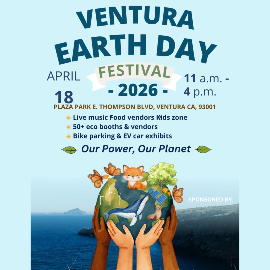 Join us as we participate in the Earth Day Festival downtown Ventura on April 18th! For families, friends, like-minded organizations, and all community members to join us for a day filled with learning opportunities, delicious food from local vendors, free kids’ zone, interactive games, diverse live music and performances, an electric vehicle showcase, and a celebration of our Blue Planet, Earth!